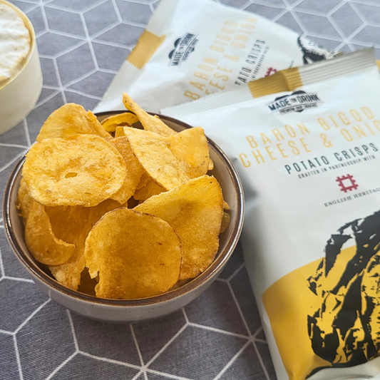 Baron Bigod Cheese & Onion Crisps | Available in both 40g and 150g | 33%-34% Gross Margin